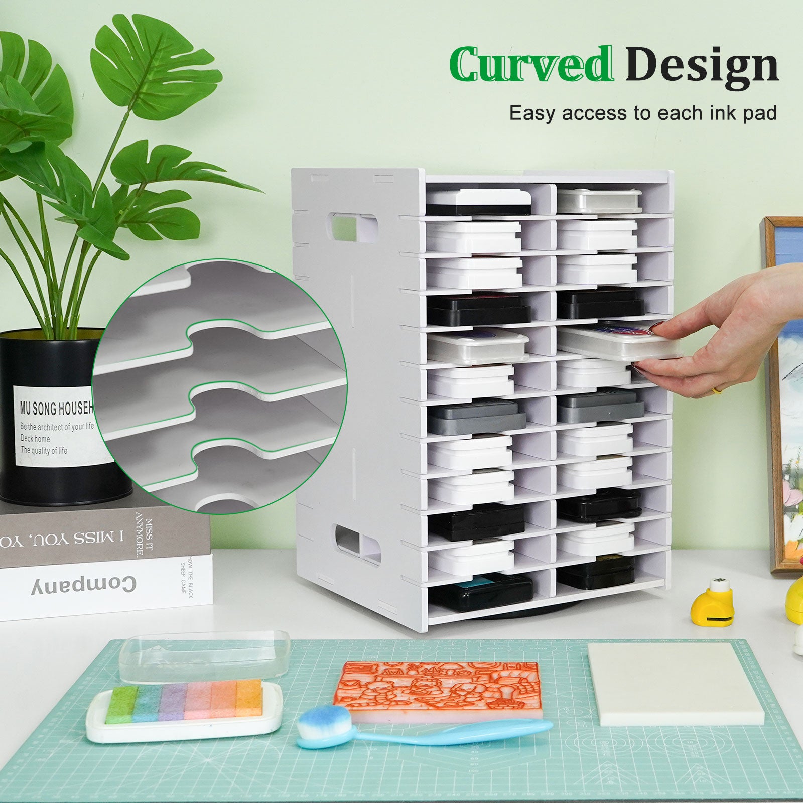 - Curved Design for Ease of Removing Ink Pads: The rotating ink pad stand is designed with curved edges on each tier, providing easy access to each ink pad. This thoughtful design ensures effortless retrieval, enhancing both convenience and organization in your workspace