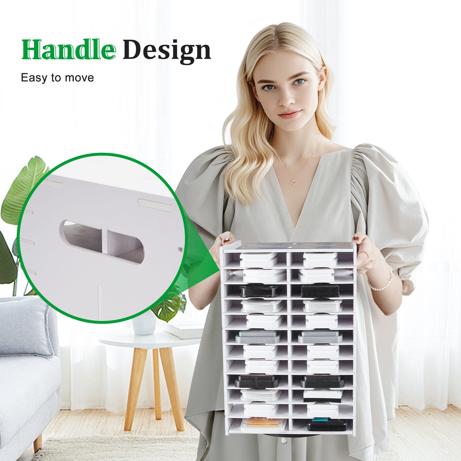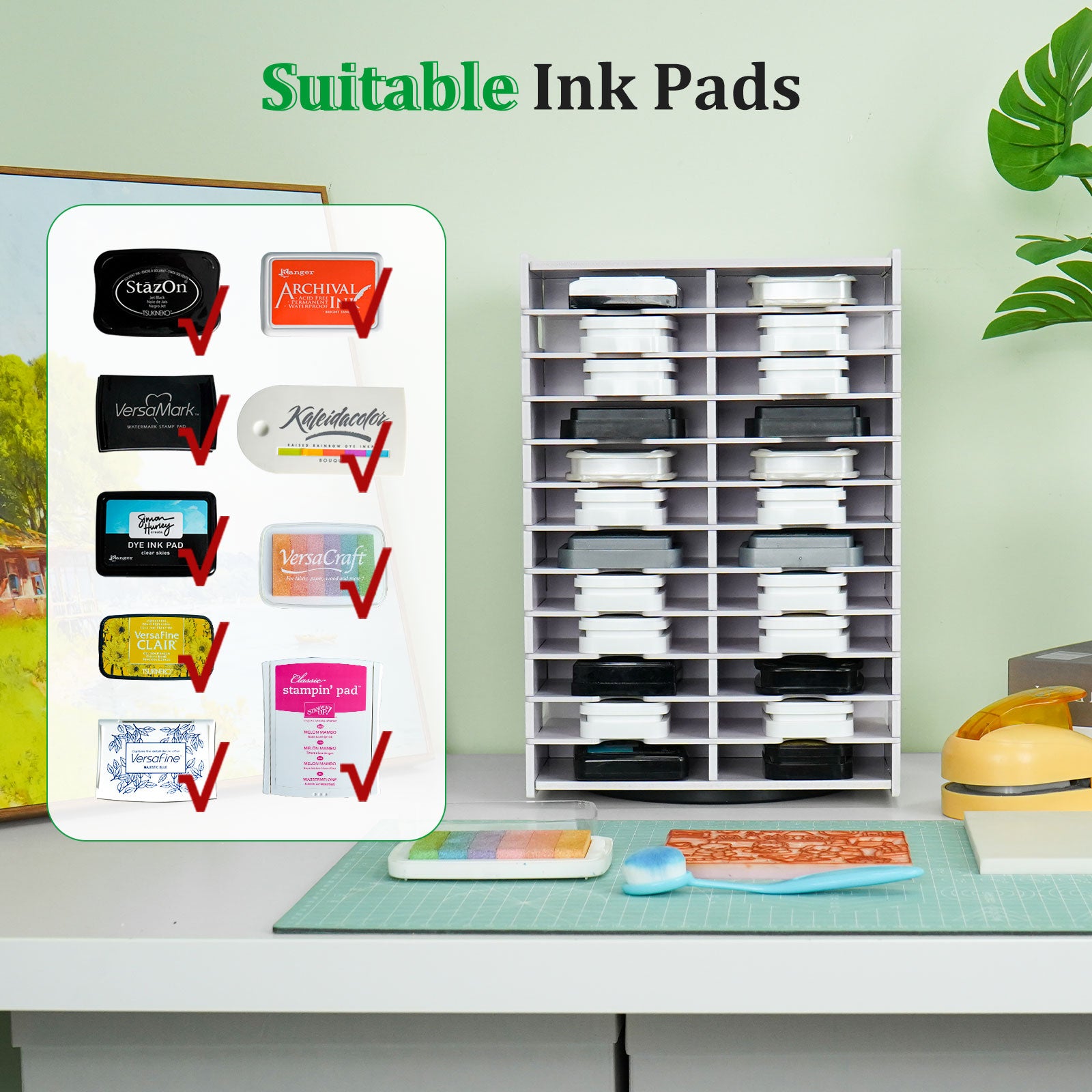 - Holds Many Types of Ink Pads: Each compartment of the ink pad spinning storage rack measures 4 “W x 3.9 ‘D x 0.8 ’H and fits a variety of ink pads such as Stampin' Up Ink Pads, Ranger Ink Pads, and more