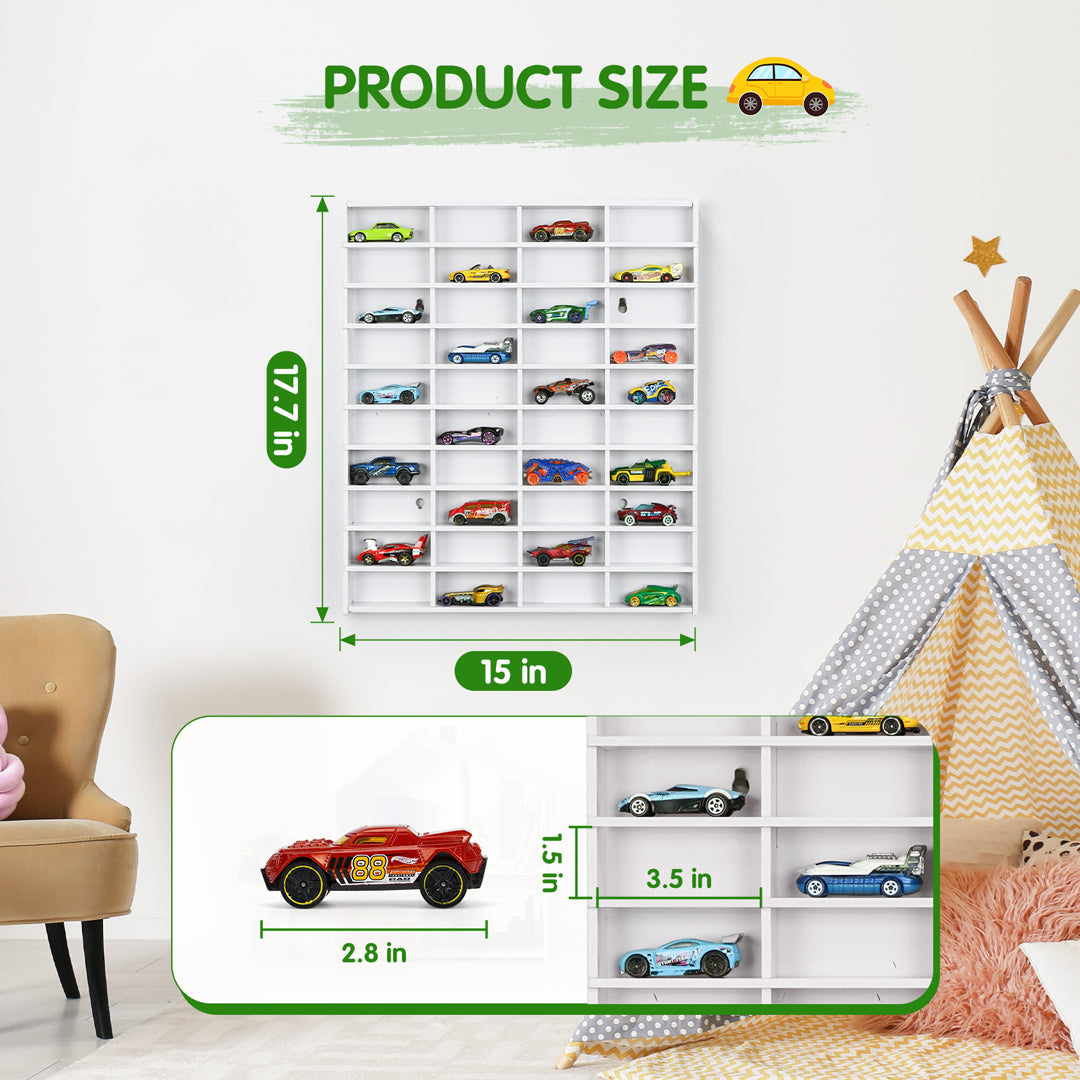 - Ample Storage Capacity: The model car organizer shelf has 40 compact compartments, the size of each compartment is 3.5"L*1.5"D*1.5"H, compatible with Hot Wheels Matchbox and other 1/64 diecast car