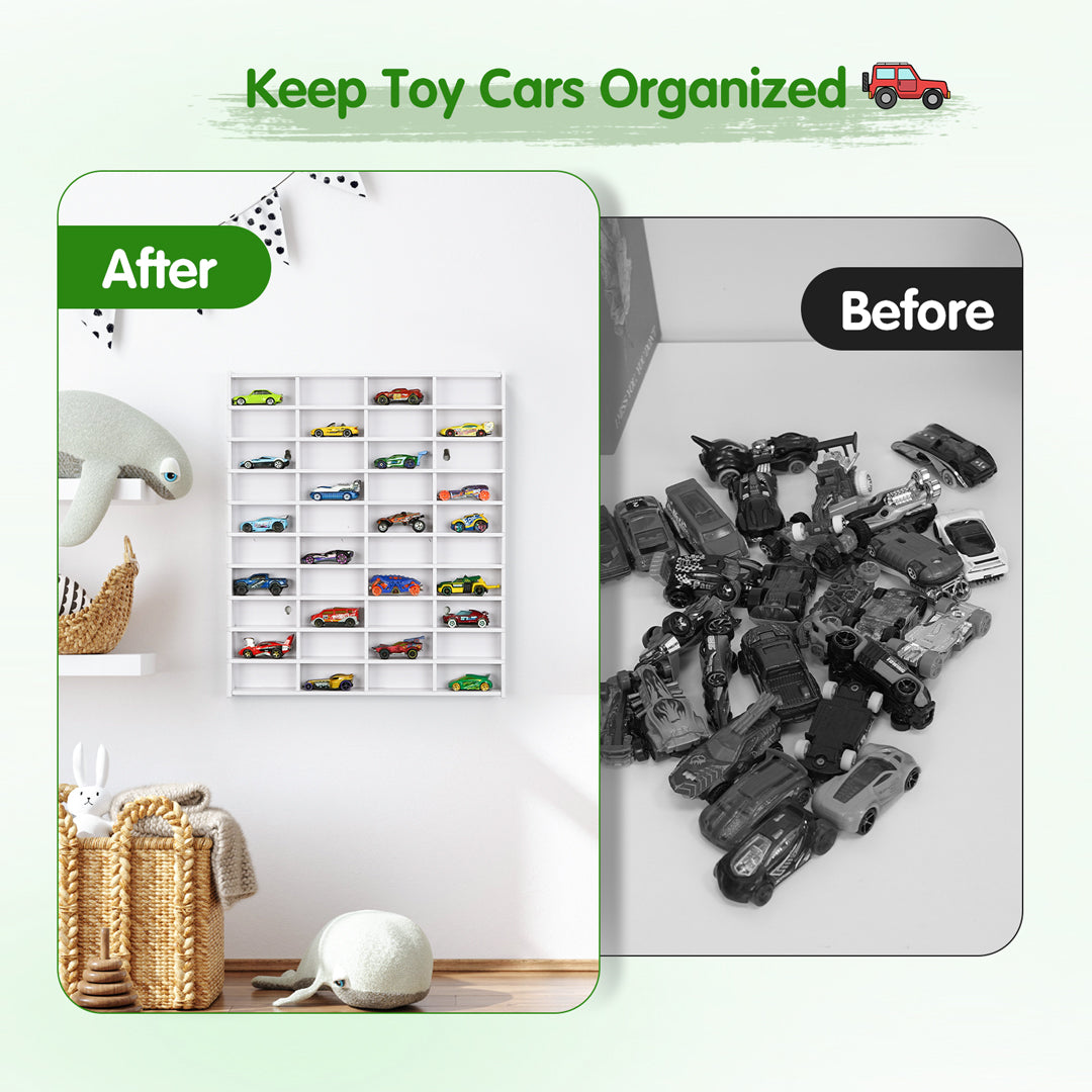 - Better Storage and Display: The toy car storage shelf keeps the cars neatly organized, preventing them from being scattered around the house. It makes it easy to view and access the cars, allowing for quick selection of the one you want to play with