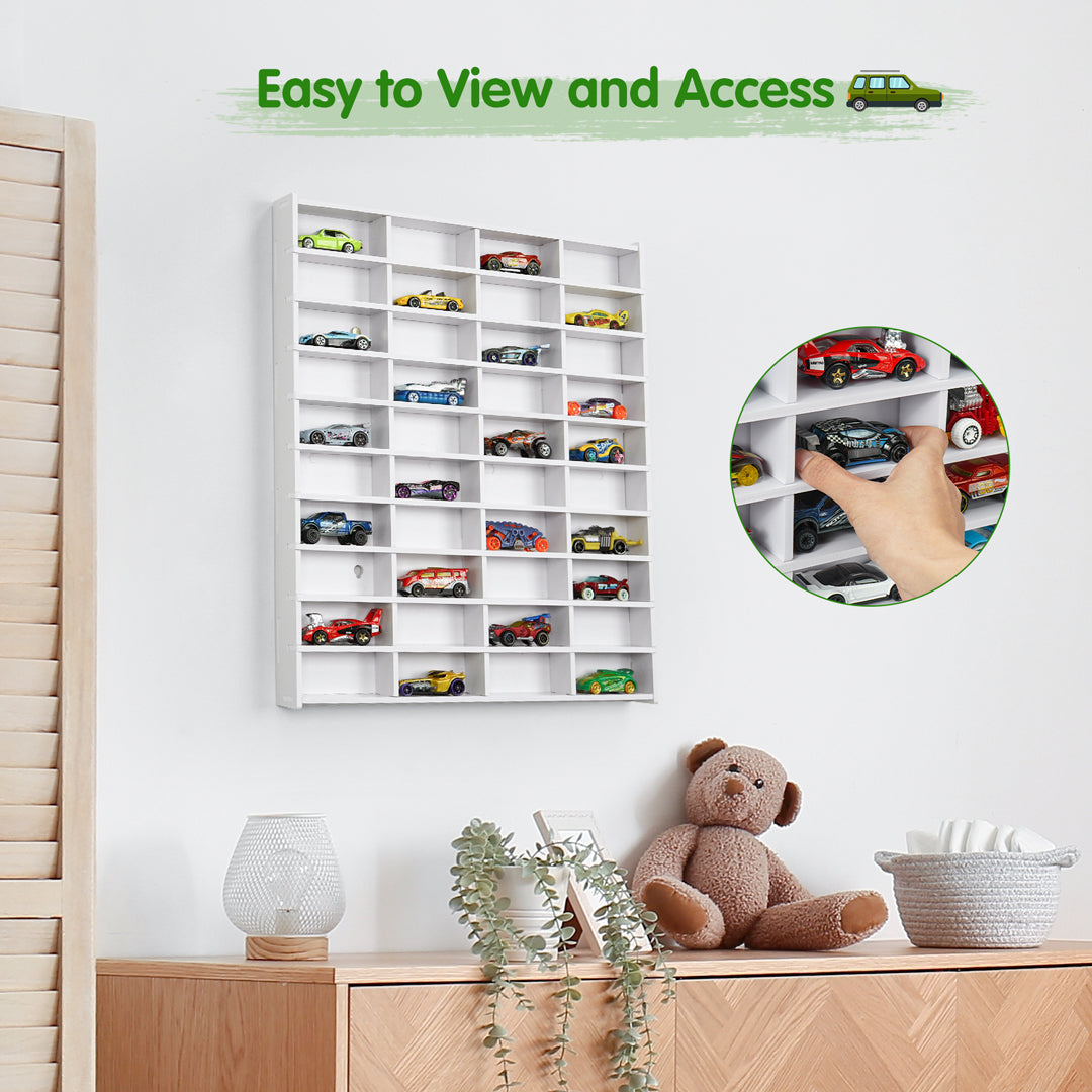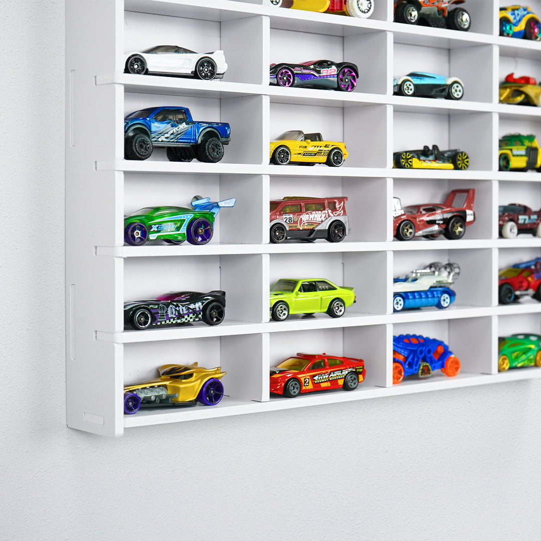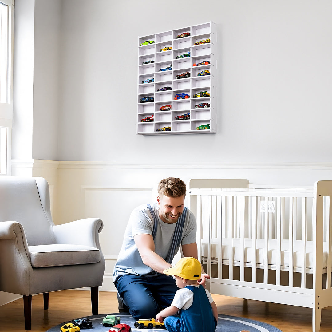 - Stylish White Exterior: The white exterior of the display shelf allows the car color to be the focal point, making it a beautiful decoration for your walls. Alternatively, you can DIY paint it in different colors to match your home’s décor