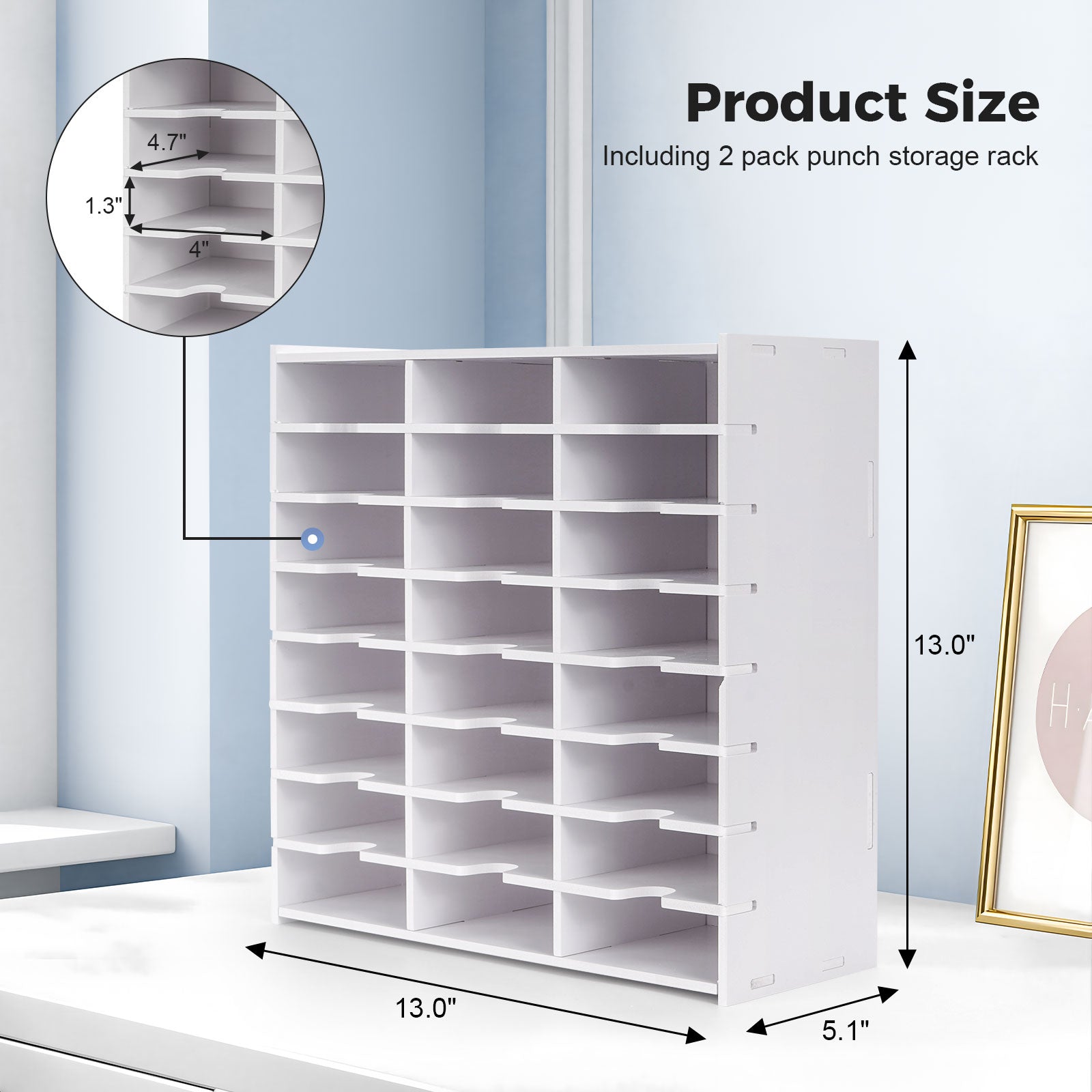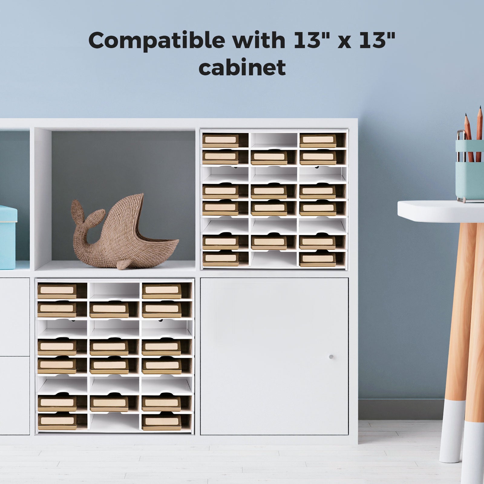 - With overall dimensions of 13" L × 5.1" W × 13" H, this craft punch organizer is compatible with 13" × 13" cabinet unit, optimizing storage space with a tailored fit